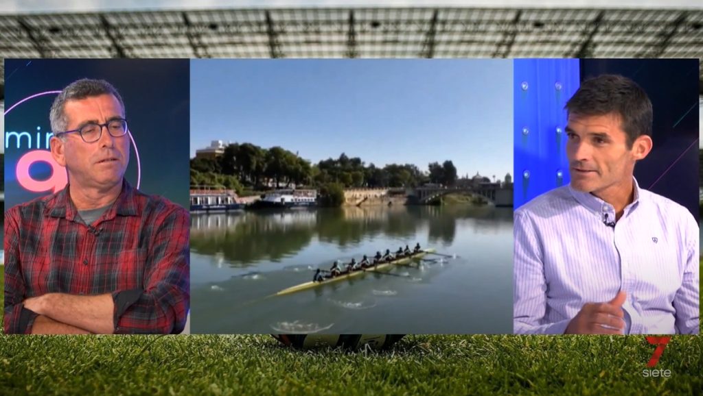 El derbi del remo sevillano, analizado en el programa ‘Minuto 91’ por los veteranos de Sevilla y Betis Juan Luis Aguirre y Gaspar Company.