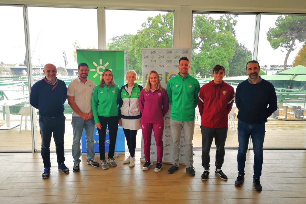 Relación de deportistas seleccionados para disputar el derbi del remo hispalense en las categorías absoluta, aspirantes y veteranos, tanto masculinas como femeninas.