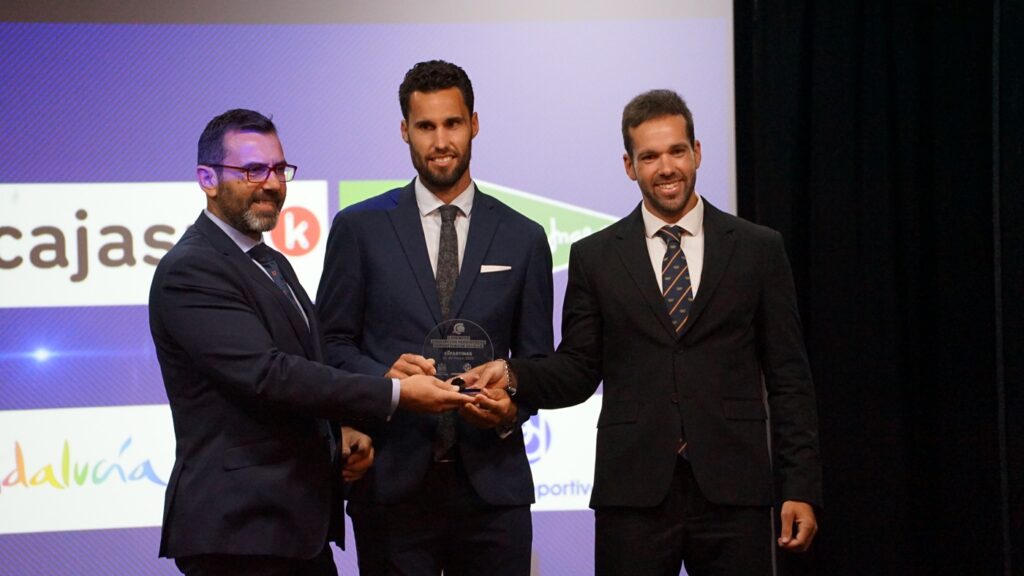 Los doble diploma olímpico del Club Náutico Sevilla Jaime Canalejo (Sevilla FC) y Javier García (Real Betis) reciben el Premio Cajasur en la I Gala de la APDS celebrada en Espartinas. LEER NOTICIA COMPLETA