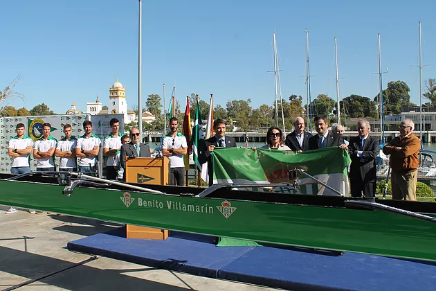 Emotiva mañana de actos la que ha tenido lugar hoy en las instalaciones del Club Náutico Sevilla por parte del Real Betis Balompié en el que se ha homenajeado a los remeros de la tripulación verdiblanca de la primera edición de la regata en 1960 y se ha bautizado al barco bético con el nombre de Benito Villamarín coincidiendo con la celebración del Centenario del legendario Presidente del Real Betis Balompié.