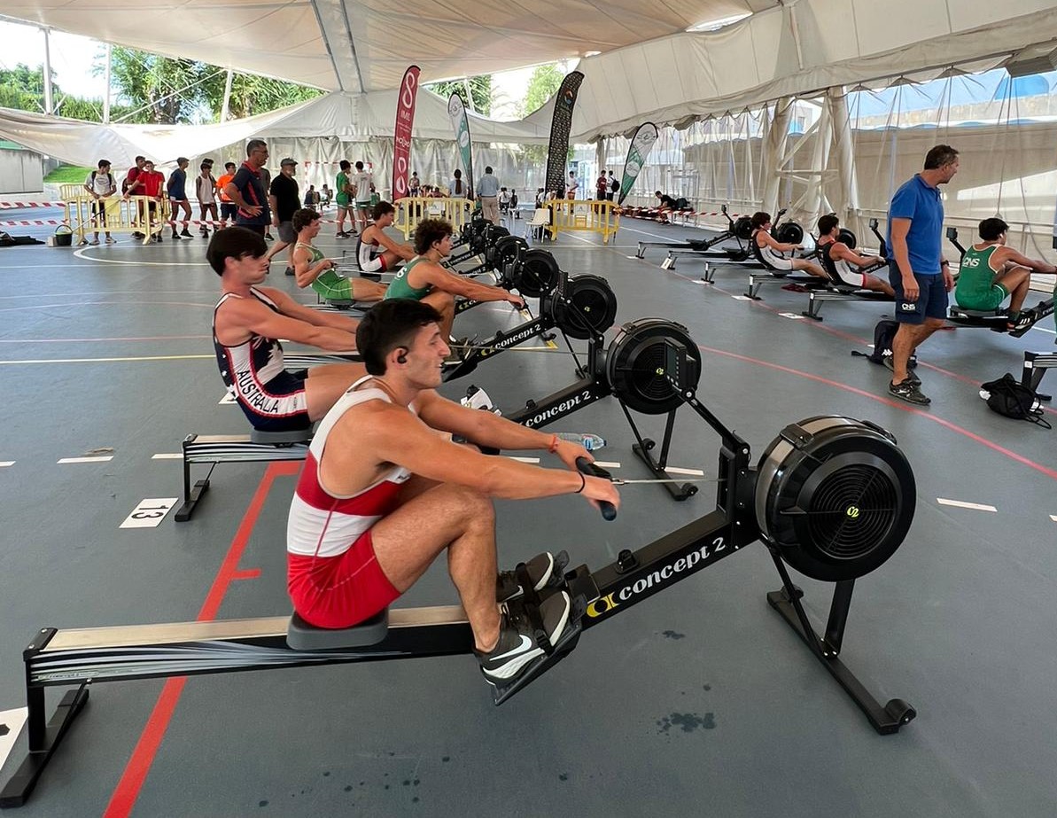 Los veteranos de la Regata Sevilla-Betis también cumplen con el remoergómetro