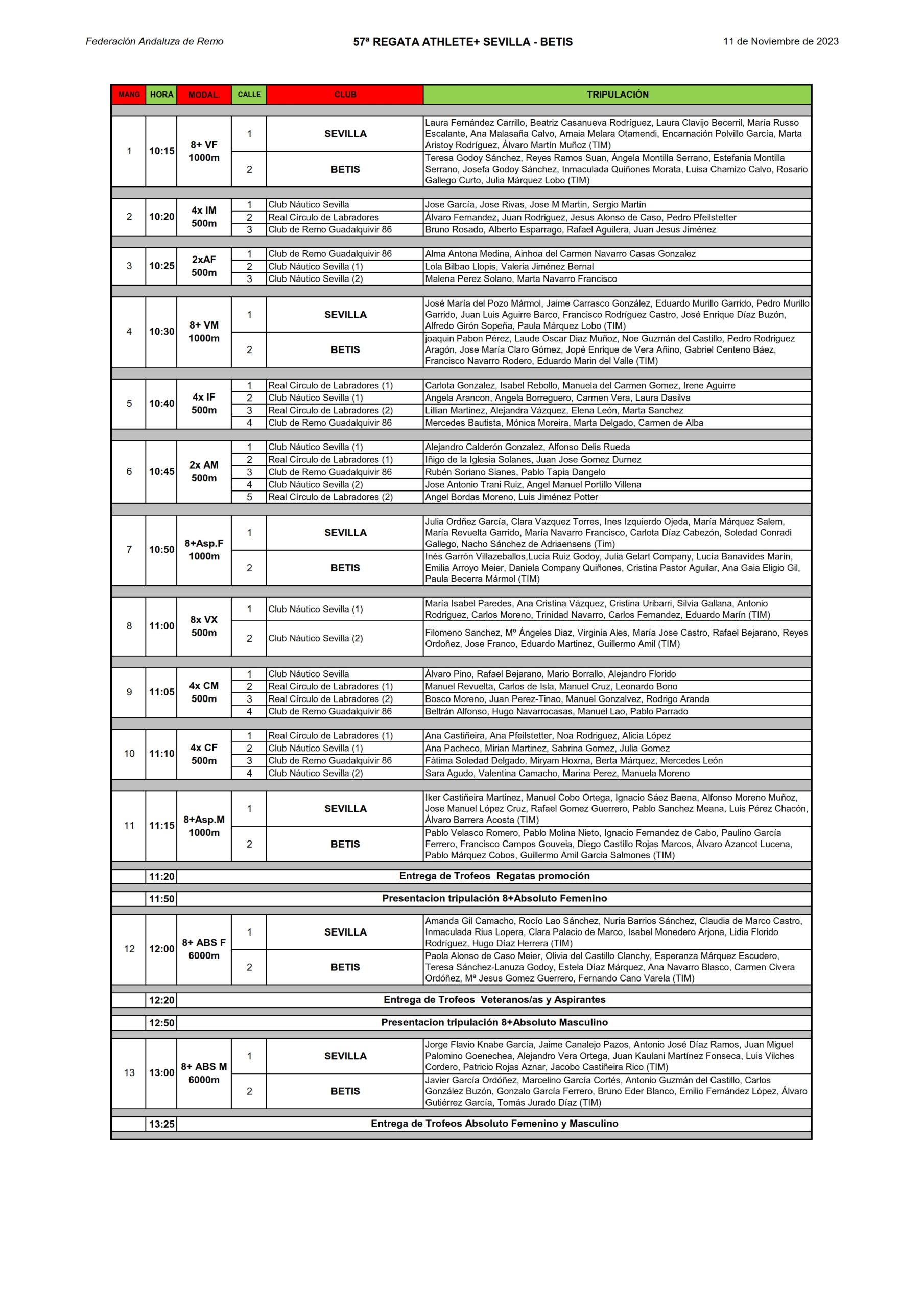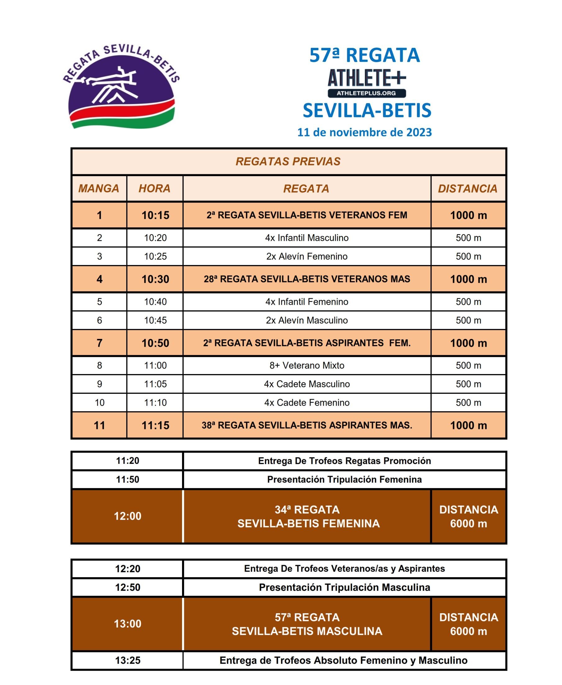 Horarios y mangas de la clásica del remo sevillano, a celebrar este sábado, 11 de noviembre.
