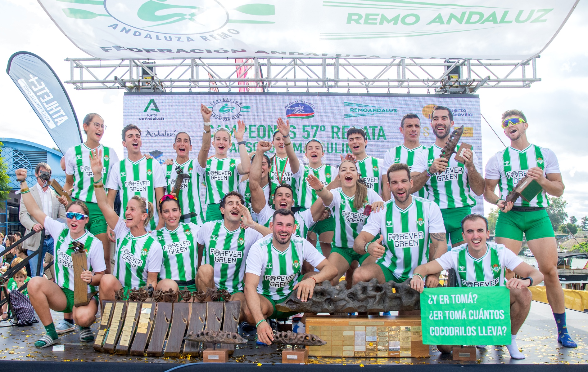 El colofón a la jornada llegaba con la prueba absoluta masculina, en la que el Real Betis ampliaba a 13 su racha triunfal para apretar aún más el acumulado de la prueba (30-27) ante un Sevilla FC que, como en las dos ediciones precedentes, vendía cara la derrota y llegaba a la altura de la Torre del Oro, pasado el ecuador del recorrido, con una ligera ventaja. Finalmente, la superioridad en vatios del bloque bético, con el histórico Marcelino García ampliando a 17 su palmarés personal, récord del derbi del Guadalquivir, se hacía valer para alcanzar la llegada en un tiempo de 18:55.86, con siete segundos escasos de renta sobre el eterno rival (19:02.77), que deberá esperar otro año para levantar el famoso ‘cocodrilo’, como es conocido el Trofeo José Antonio Muñoz ‘Anchoa’.