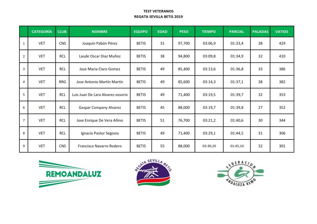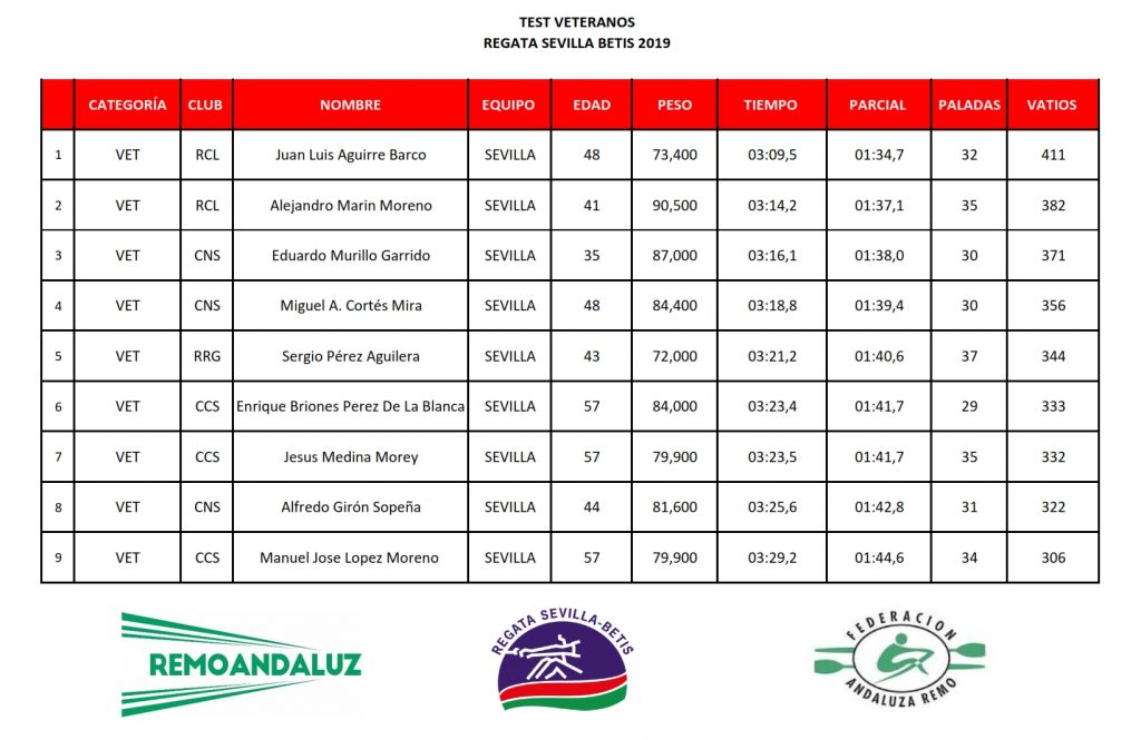 Resultados de la prueba selectiva realizada en el CEAR La Cartuja el 24 de octubre para componer los botes sevillista y bético de la categoría veteranos.