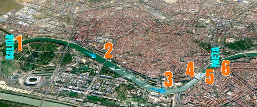 La llegada de la Regata Sevilla-Betis, tras 6.000 metros de regata, está situada en la Torre del Oro.